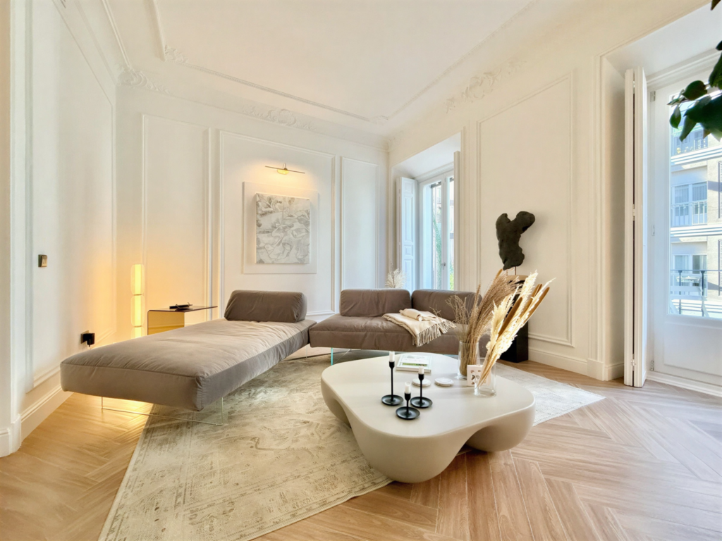 Este no es simplemente un piso de 151 m² en una de las zonas más exclusivas de la capital, sino el hogar ideal para una pareja o una persona buscando espacio, sofisticación y bienestar en el barrio de Justicia. Aquí, el lujo reside en el volumen de sus estancias con techos altos, en su máster suite concebida como un santuario de relajación con vistas y acceso a un patio privado de 28 m², en su amplio despacho con biblioteca y en sus numerosos detalles y acabados modernos y de alto standing.